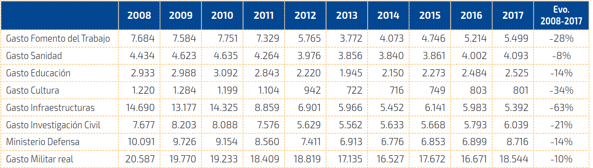 Gasto Militar comparado con Cultura, Sanidad, Educación y otros