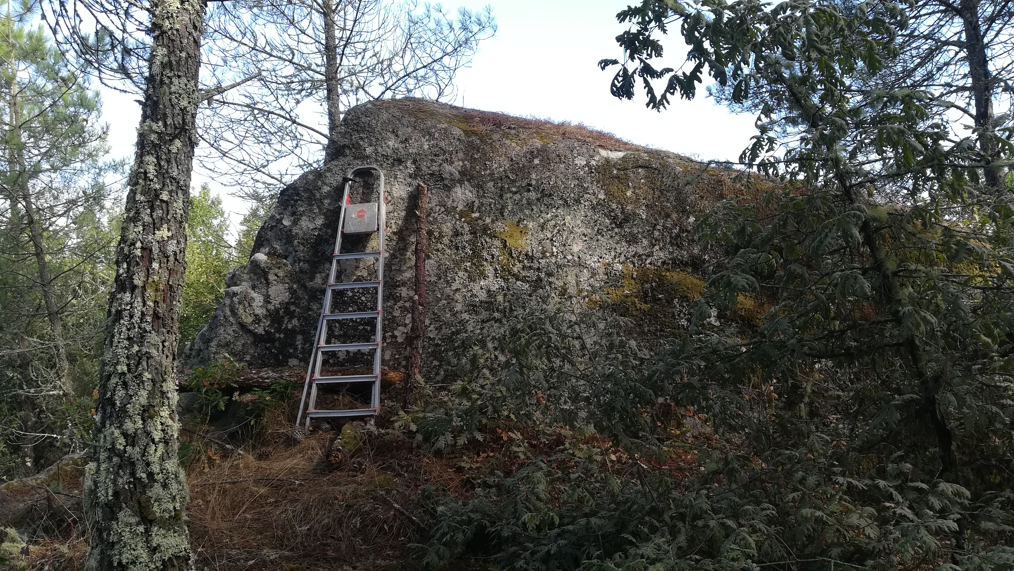 Vista del "Outeiro da Sabidá" desde el sur, mirando al norte. Tuve que usar una escalera para acceder a la parte alta de la roca.