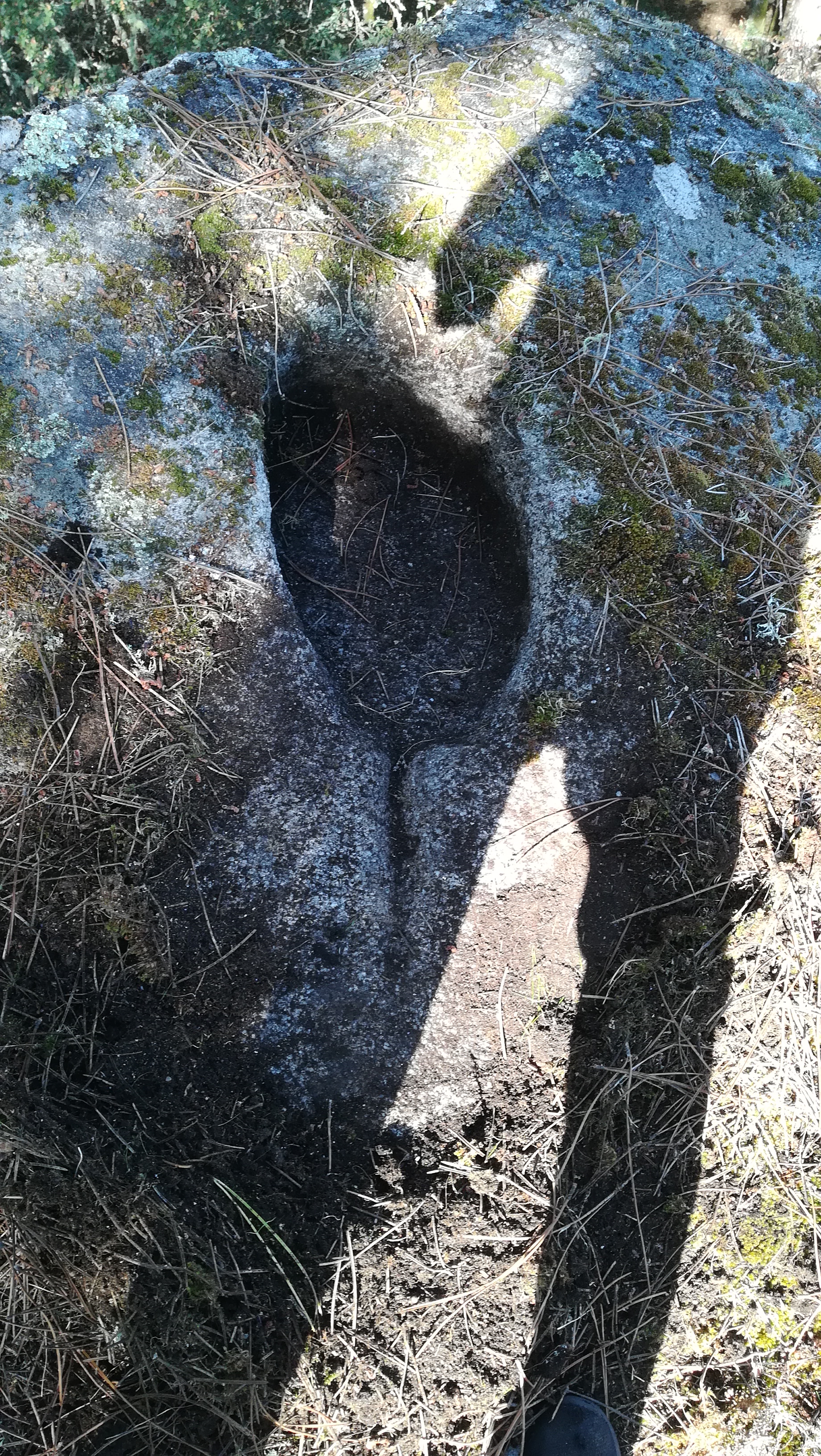 Me llamó la atención ese agujero. Aunque raro valoré en un principio, un "posible" origen natural pero el canalito (que apunta al este, como la roca triangulada) me dije, esto es de origen humano.