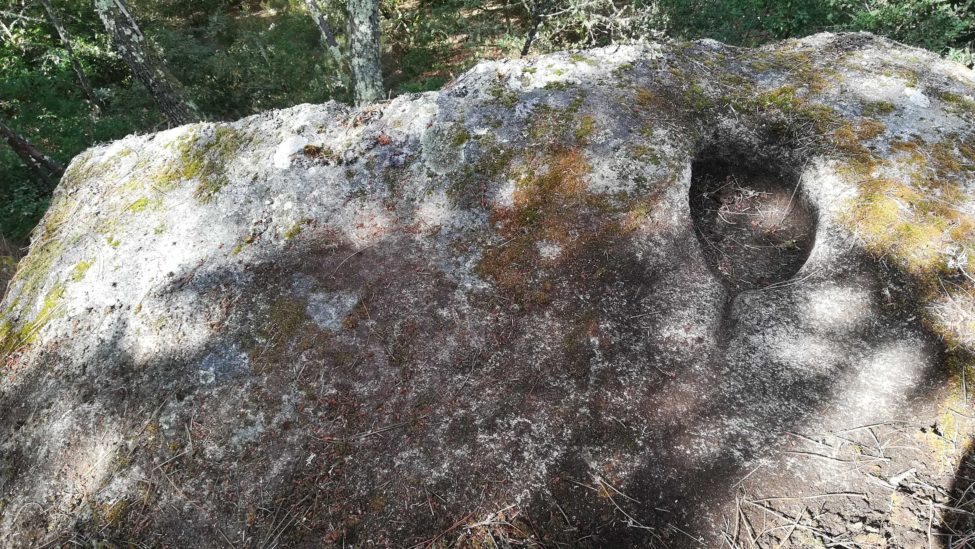 Vista de la cazoleta en la parte mas alta (oeste) de la roca inclinada hacia el este.