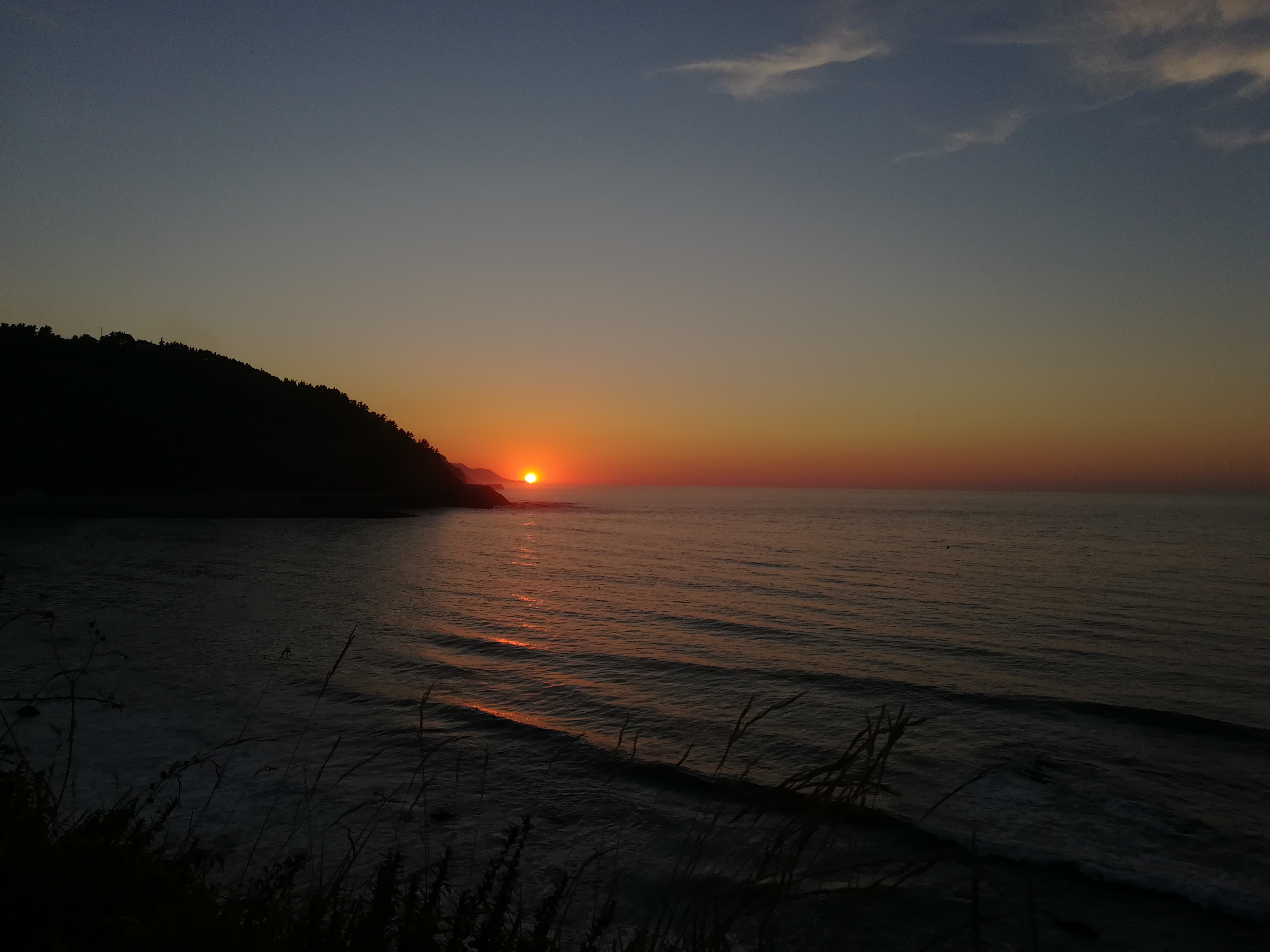 Tocando la configuración del valor de la exposición (EV) disminuyéndolo en la cámara huawei-p8-lite. En el mirador de Lapari (Deba). Por fin consigo fotografiar la redondez nítida del sol tal y como se ve a simple vista.