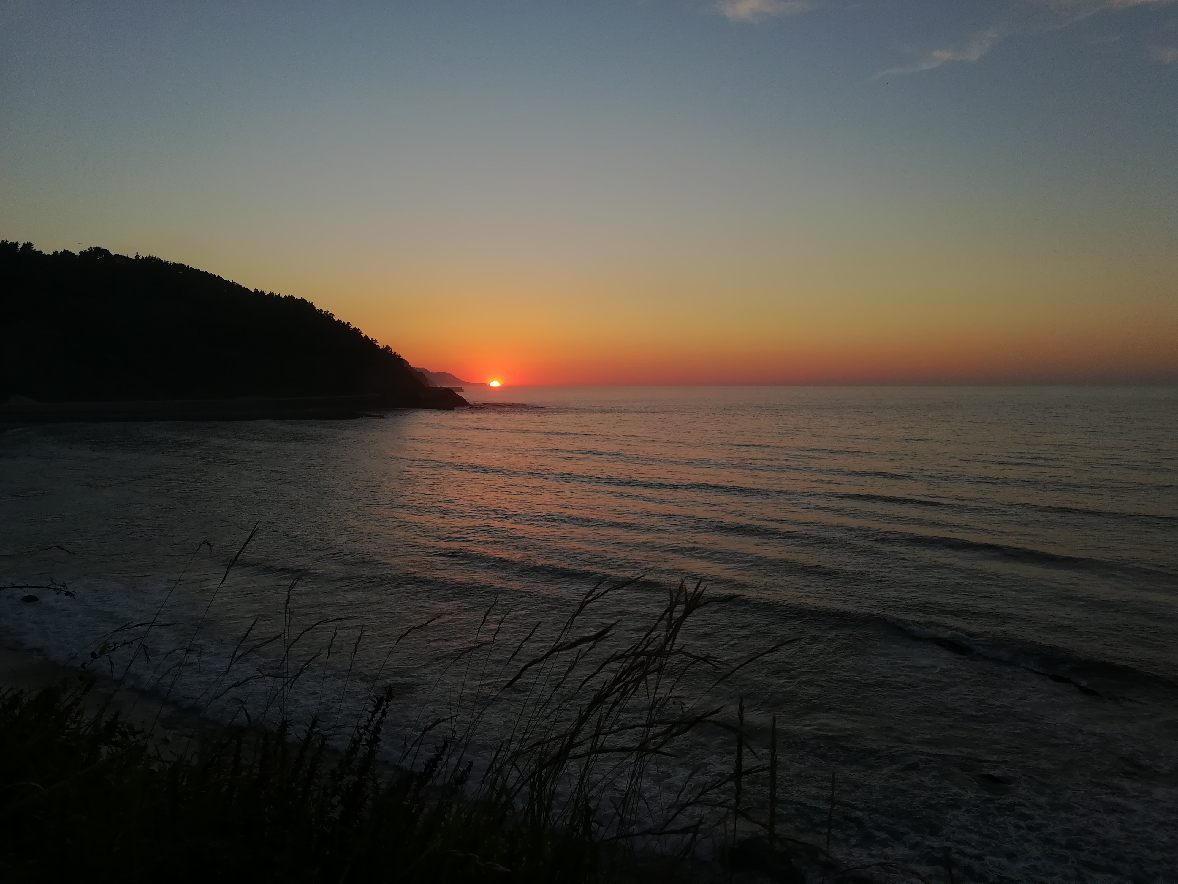 Modificando el valor de la exposición (EV) bajandolo en la cámara huawei-p8-lite. En el mirador de Lapari (Deba). Ya sale la redondez del sol nítida tal y como se ve a simple vista.
