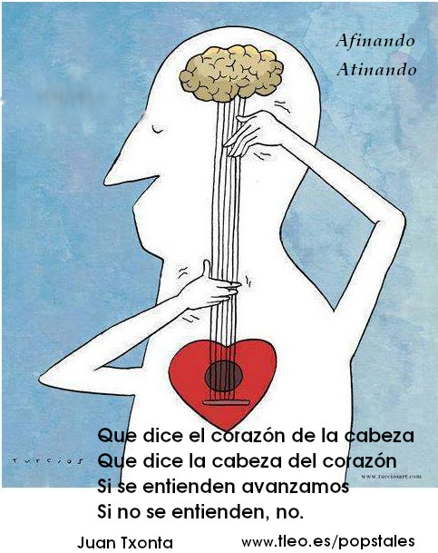 "Que dice el corazón de la cabeza. Que dice la cabeza del corazón. Si se entienden avanzamos. Si no se entienden, no." texto: Juan Txonta - (propietario tleo.es) imagen: #turciosart
