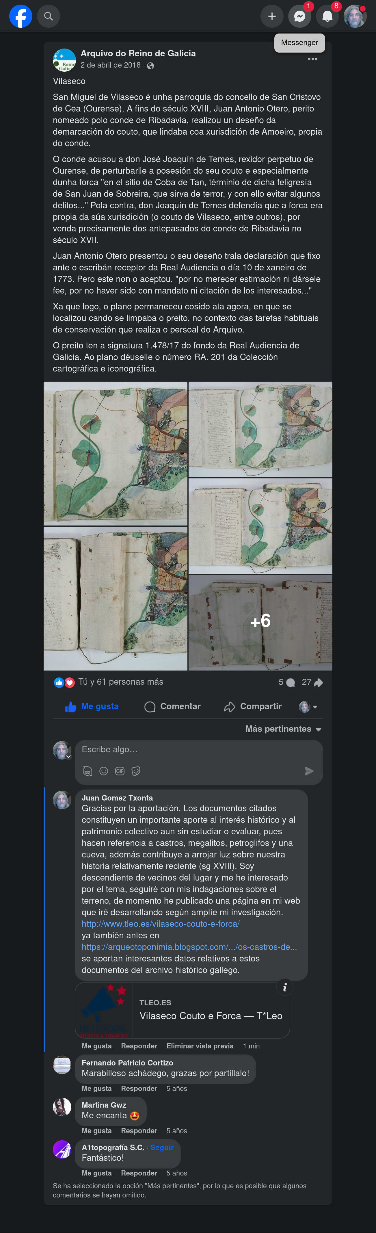 El articulo en el Facebook del "Arquivo Reino Galicia"
