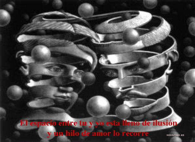 El espacio entre tu y yo esta lleno de ilusion y un hilo de amor lo recorre.