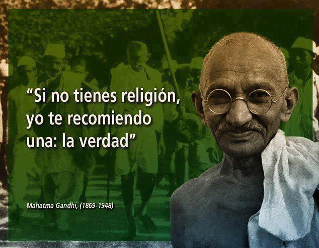 Si no tienes religión, yo te recomiendo una: la verdad. Mahatma Gandhi, apóstol de la no violencia y el pacifismo.